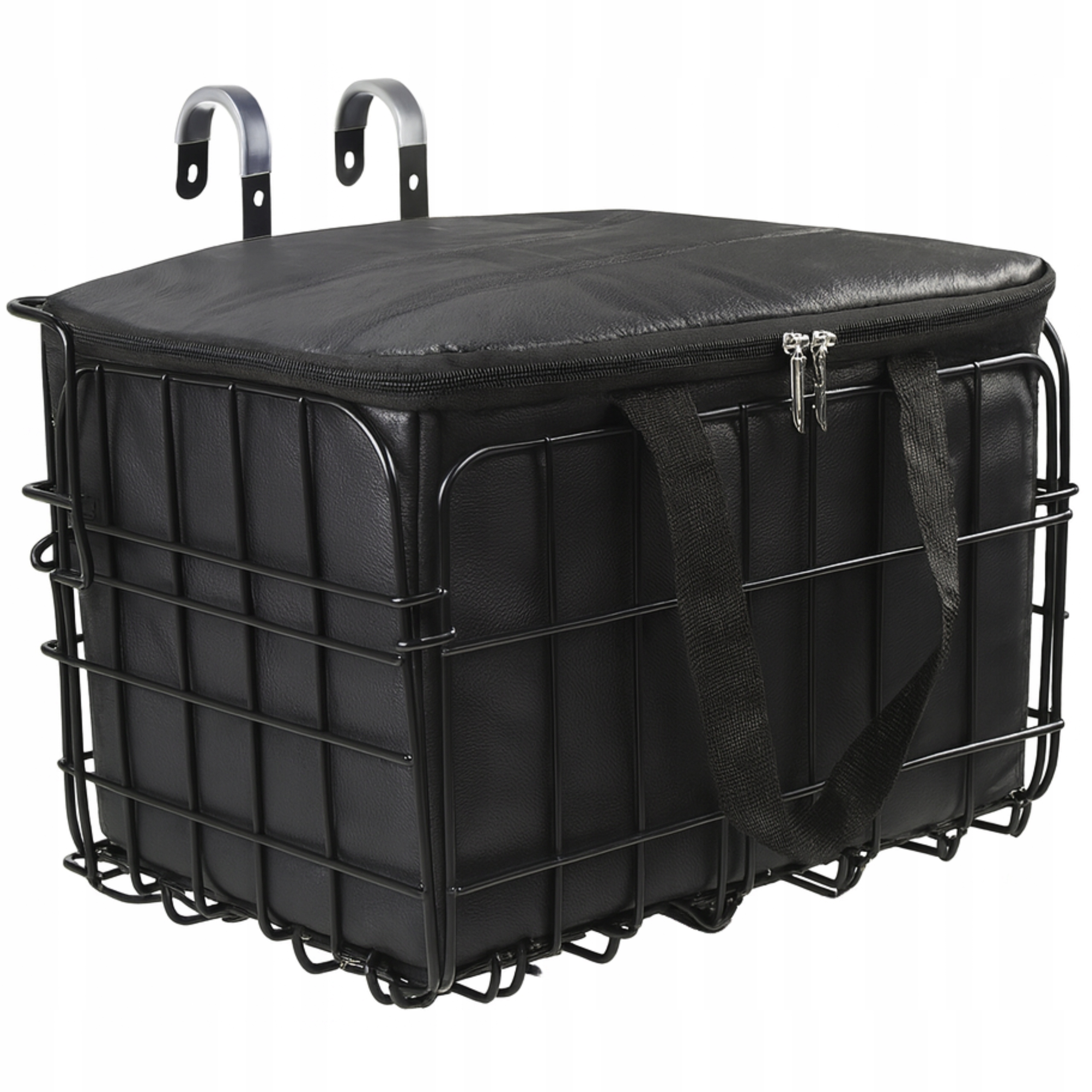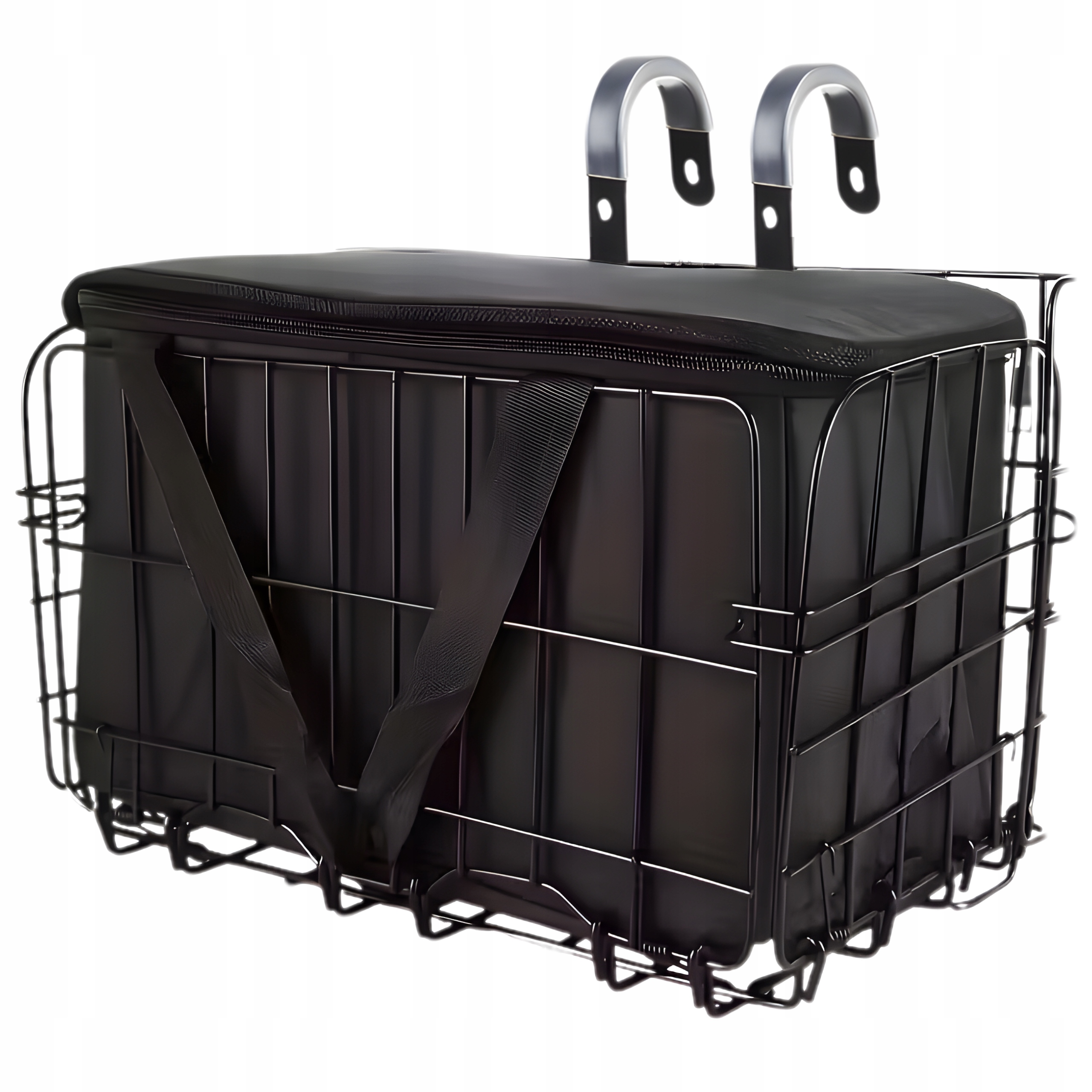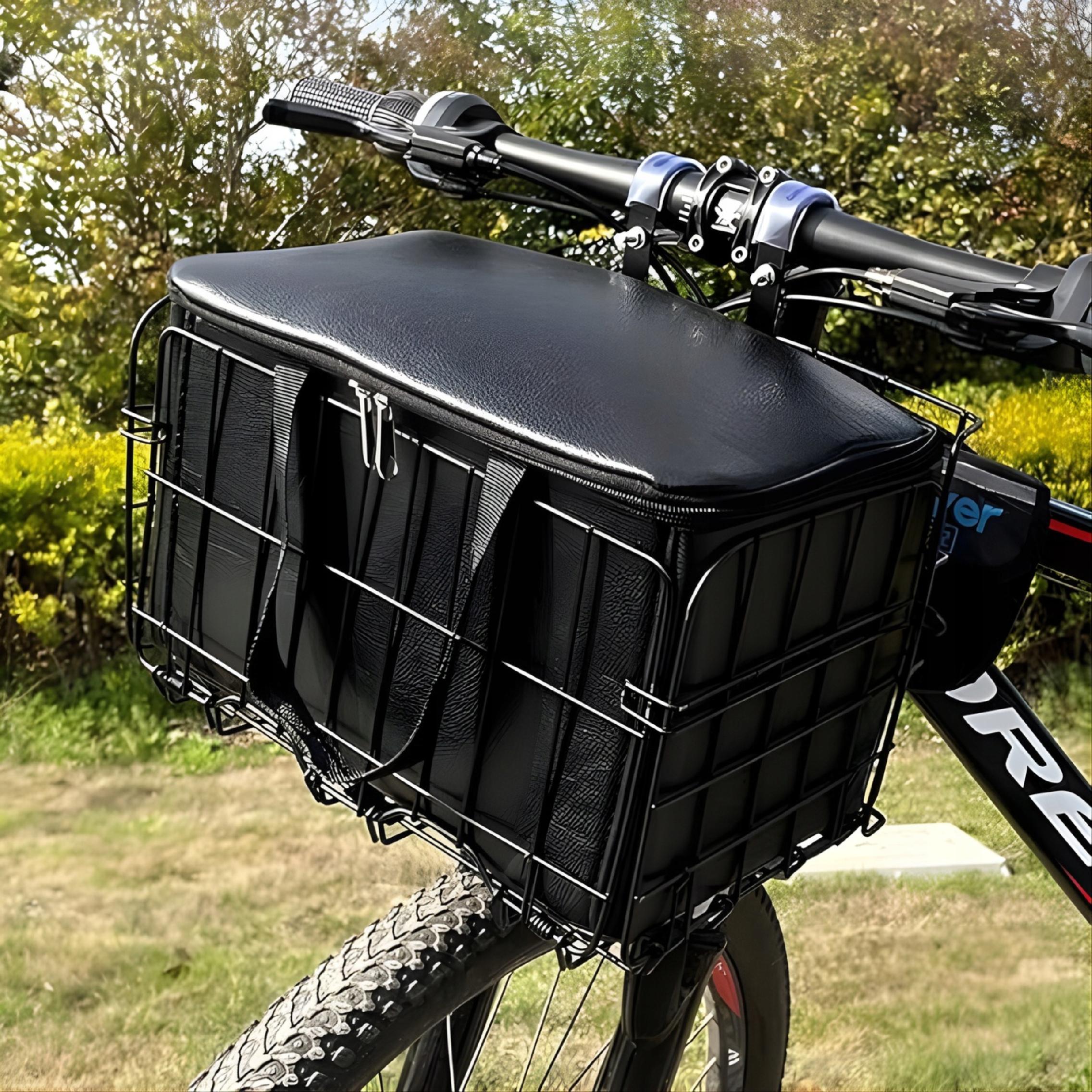 KOSZYK ROWEROWY NA KIEROWNICĘ METALOWY Z CZARNĄ OSŁONĄ SKŁADANY SOLIDNY