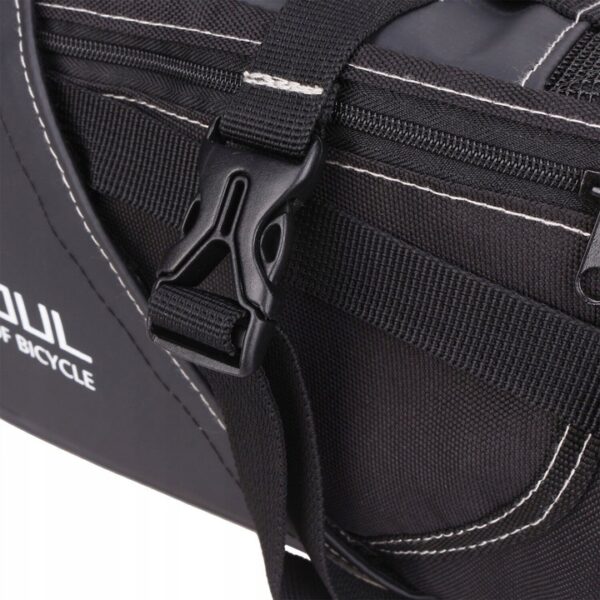 Wewnątrz znajdują się dodatkowe kieszenie. Elementy odblaskowe na torbie zwiększają bezpieczeństwo na drodze.